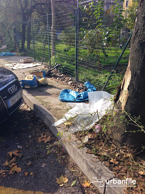 Prima dei bombardamenti della seconda guerra mondiale questo lotto ospitava degli edifici costruiti al posto dei bastioni cinquecenteschi delle mura difensive della città. Questi edifici vennero distrutti e abbattuti dopo la II Guerra Mondiale e ancora oggi sopravvivono alcune rovine che ne delimitano il perimetro. Recentemente il gruppo di cittadini di cui sopra, è intervenuto con una sistemazione di massima a giardinetto condiviso. Oggi il piccolo giardino ha un aria desolata anche perché mal frequentato, tant'è che durante la mia permanenza per fare due foto ho avuto modo di constatare l'effettiva scarsa sensazione di sicurezza. Le pareti rabberciate e pericolanti, il distributore di benzina li accanto non aiutano di certo a migliorare la sensazione.