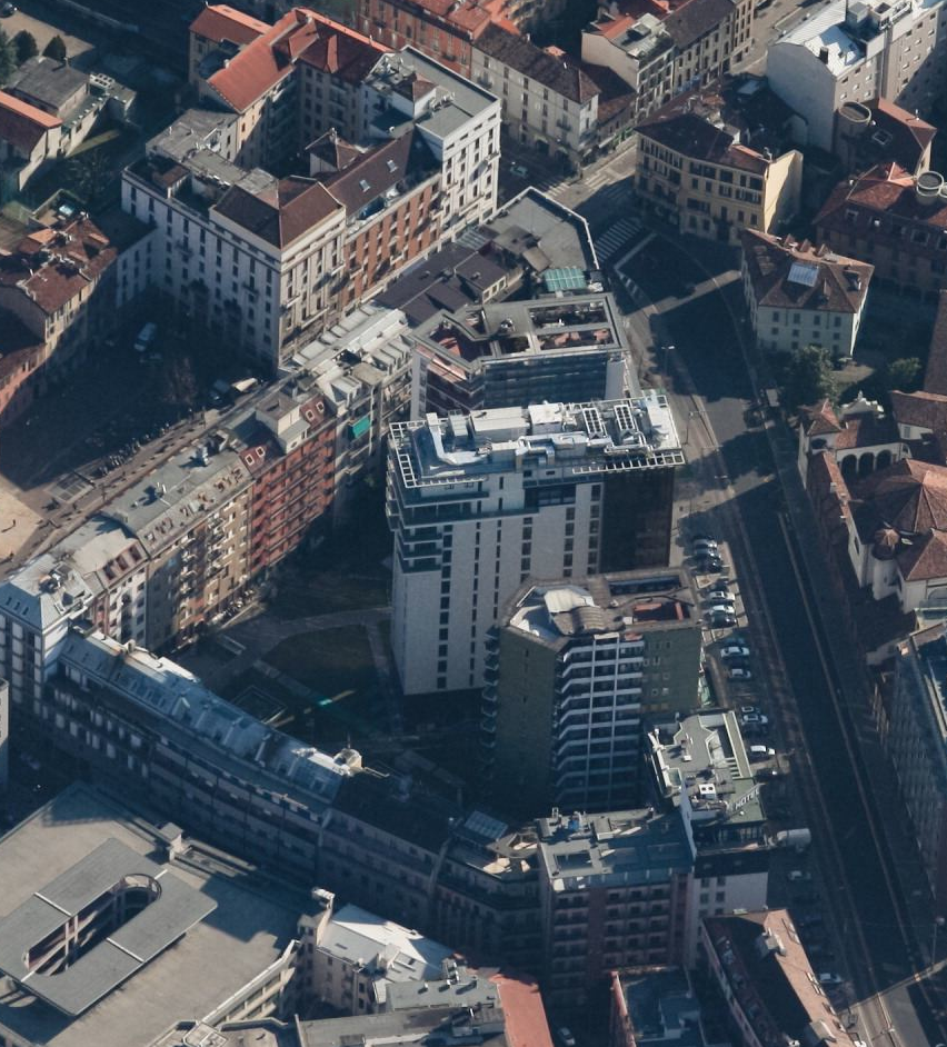 Realizzazione di un complesso residenziale con annesse autorimesse progettato dallo Studio Capelli Architettura & Associati. In Via Lattanzio 2/4 all'angolo con Via Colletta Pietro
