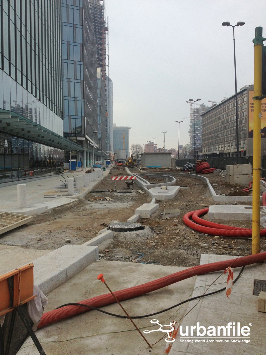 Ecco la situazione di questi giorni in Viale Liberazione, ai piedi della torre Diamntone. Prende forma il marciapiede con pista ciclabile.